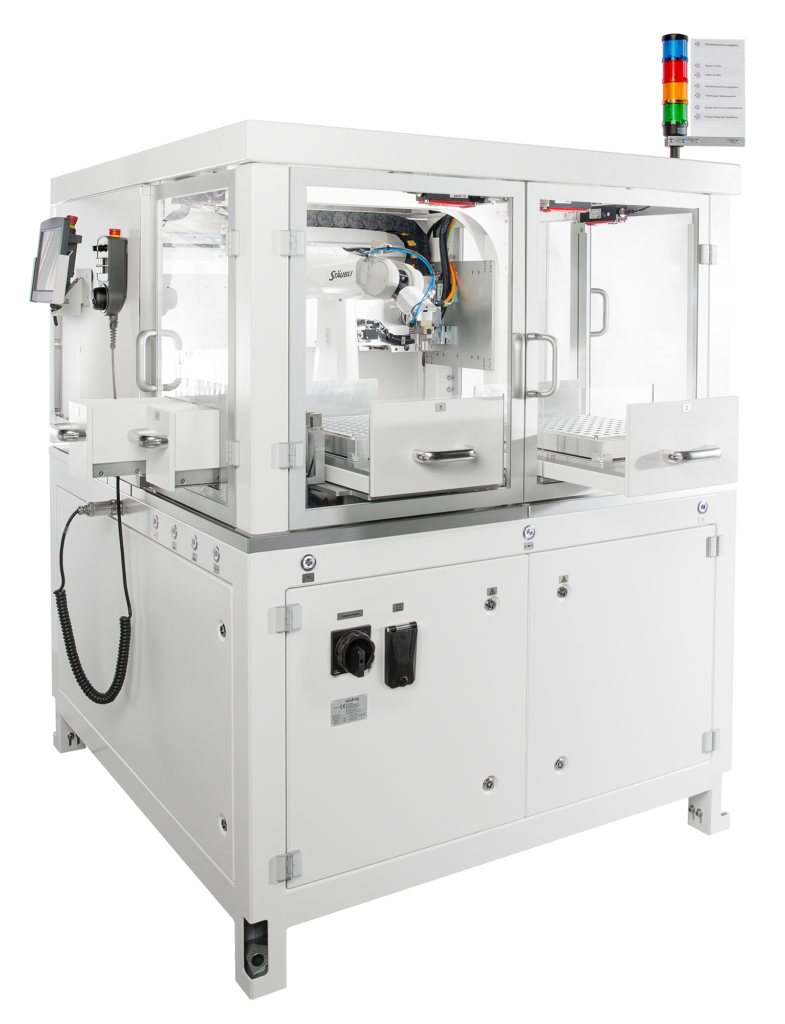 Schubladensysteme oder Stapelmagazine in verschiedenen Ausführungen dienen als Werkstückspeicher. Mess-Systeme für die Qualitätssicherung, Beschriftungseinheiten oder Reinigungsstationen können je nach Bedarf integriert werden.